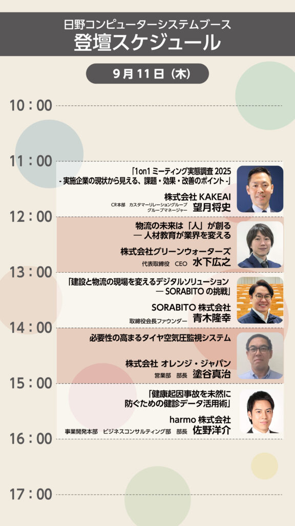 会期中は、ブース内特設ステージにて、11:00~16:00の時間帯でパートナー企業によるプレゼンテーションを連日実施します。各社の最新ソリューションや事例を直接聞ける貴重な機会となっています。